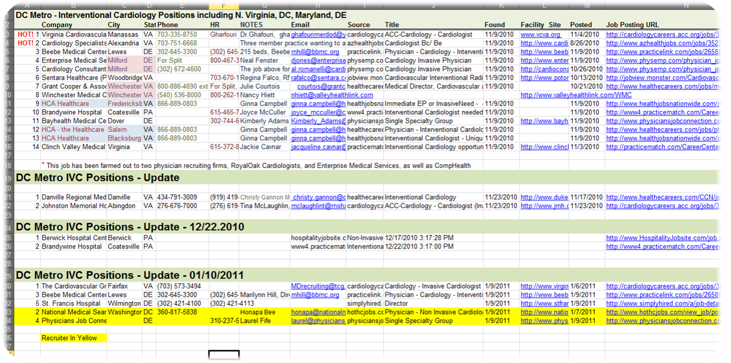 - All the marketing resources you need - including call lists to facilities with posted jobs that meet your candidate marketing requirements,